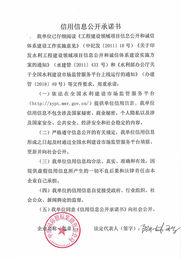 信用信息公开承诺